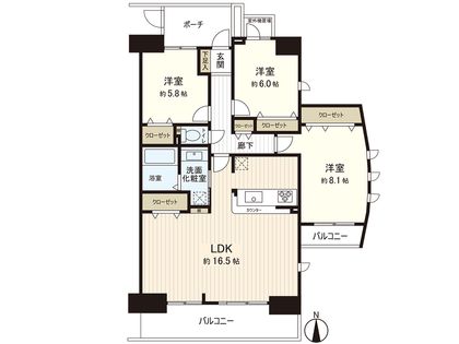3LDK / 90.76㎡ / 5階