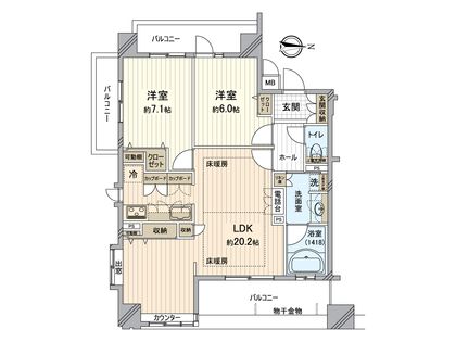 2LDK / 73.01㎡ / 13階