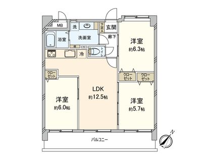 3LDK / 65.06㎡ / 3階