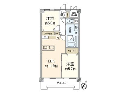 2LDK / 54㎡ / 9階