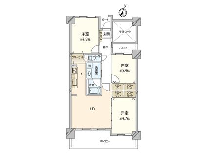 3LDK / 76.03㎡ / 7階