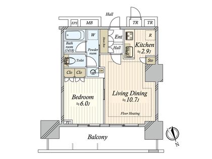 1LDK / 44.97㎡ / 11階