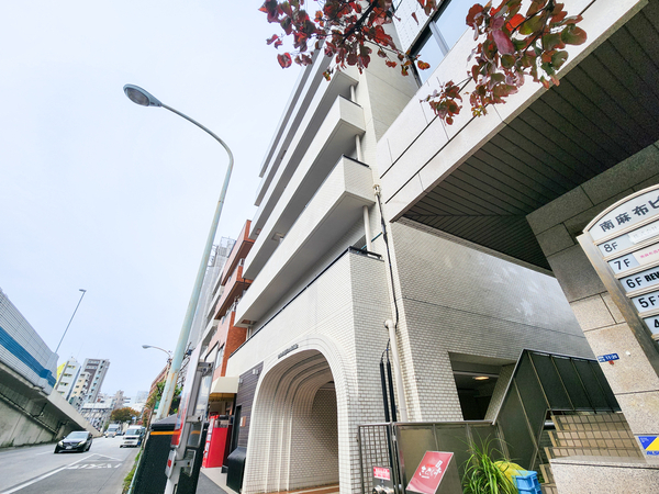 「オリエンタル南麻布」は港区南麻布4丁目に位置する、鉄骨鉄筋コンクリート造のマンションです。最寄りの東京メトロ日比谷線「広尾」駅までは徒歩11分。天現寺橋交差点に近い明治通り沿いに立地し、バス便を利用して渋谷や恵比寿方面へもスムーズにアクセス可能です。 建物はホワイト系のレンガ調のタイル貼りで、ヴィンテージ感あふれる外観デザインが採用されています。エントランスはオートロックシステム付きで、安心感のある暮らしを提供してくれます。 周辺には「有栖川宮記念公園」があり、広大な緑地で散策やリフレッシュができる点が魅力です。また、「ナショナル麻布」などのスーパーマーケットも徒歩圏内で利用でき、質の高い食材や日用品の買い物も楽しめます。