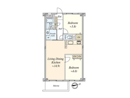 2LDK / 57.96㎡ / 3階