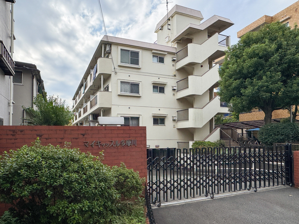 「マイキャッスル多摩川」は東矢口2丁目に位置する、鉄筋コンクリート造のマンションです。最寄りの東急多摩川線「矢口渡」駅までは徒歩約4分。駅までのアプローチがフラットで、毎日の通勤や通学に負担の少ない立地環境にあります。エントランス周辺には植栽が施されています。敷地内には駐輪場が設けられており、近隣への移動もスムーズです。周辺環境については、「西友矢口ノ渡店」が徒歩圏内にあり、日常の食材調達には困りません。また、多摩川の河川敷へも気軽に足を運ぶことができ、散歩やジョギングを楽しめるリフレッシュ環境も整っています。
