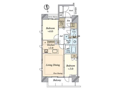 2LDK / 59.3㎡ / 2階
