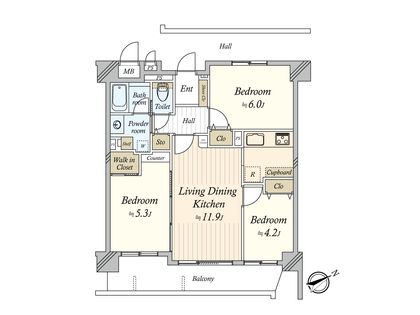 3LDK / 60.87㎡ / 7階