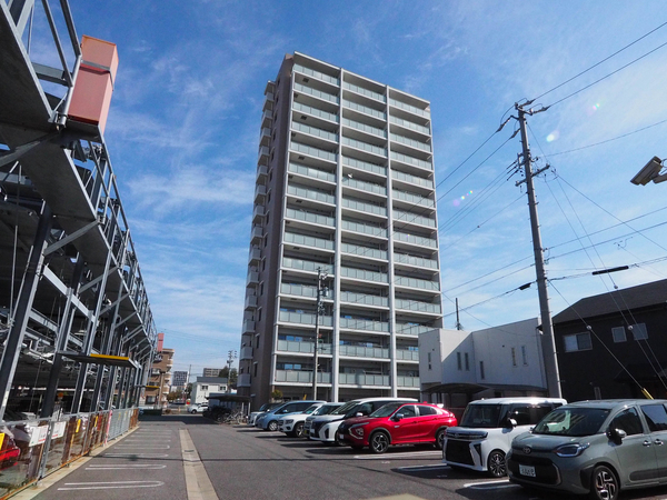「レゾンシティ知立マークタワー」は、南新地3丁目に位置する、2015年竣工のマンションです。最寄りの名鉄名古屋本線「知立」駅まで徒歩12分。建物は全戸南向きに配置され、1フロア3邸の設計により、全住戸の3分の2が角住戸という高い独立性を確保したプランニングです。構造面では、積層ゴムなどの装置で地震エネルギーを吸収し、建物の揺れを大幅に低減する「免震構造」が取り入れられています。敷地内には、全戸分を上回る駐車場に加え、愛車の手入れができる洗車スペースや、散歩帰りに便利なペット足洗い場付き。エントランスには、宅配ボックスが用意されています。また、専有部には、大切な自転車を自宅前で保管できるサイクルバルコニーや、プライバシー性を高める門扉付きの専用ポーチを設置。一部住戸では、キッチンから洗面室やバルコニーへ直接移動できる3WAY動線が導入されており、スムーズな家事動線が実現されています。周辺には、「新地公園」や「知立図書館」などの公共施設に加え、スーパーマーケット「ピアゴ」などの商業施設が徒歩圏内です。