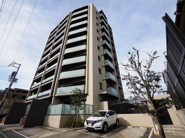 「プラウド瑞穂八勝通」は瑞穂区八勝通2丁目に位置する、野村不動産分譲の10階建てのマンションです。最寄りの名古屋市営地下鉄名城線「瑞穂運動場東」駅まで徒歩5分、「総合リハビリセンター」駅からも徒歩6分。山手グリーンロードに面し、南側には第一種低層住居専用地域と第一種風致地区が広がる開放的な高台に2018年に竣工しました。建物外観は、縦のラインを強調したマリオンとアルミルーバーが印象的な端正なフォルムで、街並みに調和する美しさが追求されています。1フロア3邸という配置により、全戸の約65%が角住戸となる独立性の高いプランニングが実現されています。敷地内には全戸分の駐車場が配備されており、カーアクセスの利便性も確保。専有部は80平米超のゆとりある住戸が中心で、足元から部屋を暖める床暖房などが採用されています。周辺環境については、徒歩圏内に桜の名所として知られる「山崎川」やスポーツ施設も揃った「瑞穂公園」の潤いが広がります。