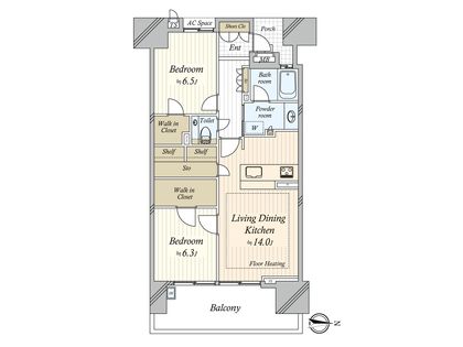 2LDK / 69.71㎡ / 14階