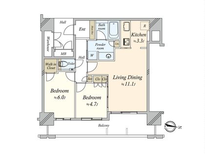 2LDK / 58.05㎡ / 17階