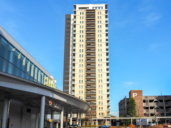 「プラウドタワー春日井」は春日井市上条町に位置する、野村不動産分譲のタワーマンションです。JR中央本線「春日井」駅まで徒歩1分という駅前立地に誕生した、エリア内でも象徴的な存在感を放つ建物です。外観は、空に溶け込むようなガラスウォールとアースカラーのタイルが織りなす、洗練されたファサードデザイン。構造には、地震の揺れを建物に伝えにくくする「免震構造」が採用されており、万が一の際にも居住者の安全を守る設計となっています。敷地内には、住宅棟のほかに自走式駐車場棟や商業・業務施設棟が配置され、機能的な街区が形成されています。共用部には、エレベーターホールへの動線を美しいアートで迎えるエントランスギャラリーや、格調高いエントランスラウンジを設置。また、書斎としても利用可能なオーナーズラウンジも設けられ、居住者の多様なライフスタイルに応えます。専有部では、ディスポーザーや床暖房など快適な生活をサポートする設備が採用されました。周辺環境については、徒歩圏内に「春日井市役所」などの公共機関や、生活利便施設が整っています。