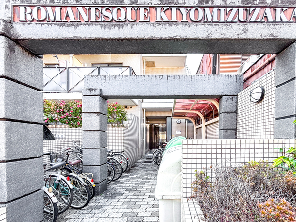 「ロマネスク清水坂」は東山区清水4丁目に位置する、鉄筋コンクリート造のマンションです。最寄りの京阪本線「清水五条」駅まで徒歩14分。東大路通から一本入った静かな住環境にあり、周辺の歴史的な街並みと調和しています。外観は趣のあるタイル貼りで仕上げられ、エントランスには居住者の安全を守るオートロックシステムが採用され、敷地内には駐輪場が確保されています。専有部は居住性を重視した設備仕様が整えられています。周辺には世界遺産である「清水寺」などの観光名所が近くにある一方、地域密着型のスーパーマーケット「ハッピー六原京都店」や「東山区総合庁舎」などの生活利便施設も徒歩圏内に揃っているのが魅力です。