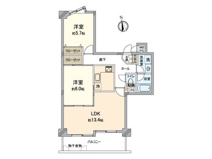 2LDK / 58.92㎡ / 7階