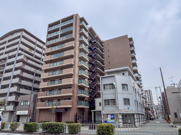 「大拓メゾン千代崎みなと通」は、西区千代崎1丁目に位置する、2000年竣工の鉄骨鉄筋コンクリート造マンションです。最寄りの大阪メトロ中央線・阪神なんば線「九条」駅まで徒歩6分。長堀鶴見緑地線「ドーム前千代崎」駅まで徒歩8分と、複数路線の利用が可能です。建物外観はウォームグレーとナチュラルブラウンのツートンカラーを基調としたタイル貼り。総戸数40戸のうち30戸が角住戸としてプランニングされ、光と風を取り込みやすい住棟配置がなされています。共用部のエントランスホールには御影石や大理石が用いられ、坪庭や折り上げ天井を設けた設計。利便施設として、24時間利用可能な宅配ボックスを設置しています。専有部にはリビングの床暖房や人造大理石天板のシステムキッチン、浴室換気乾燥機が整っています。住居の各階には大型のトランクルームが用意され、収納スペースを確保した構造です。周辺には「松島公園」や「ナインモール九条」、「多根総合病院」が徒歩圏内にあります。