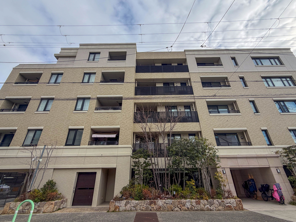 「グランドメゾン茨木下中条」は茨木市下中条町に位置するマンション。かつて邸宅街として時を重ねたこの地に、環境との調和を目指して2018年に竣工しました。建物外観は基壇部、中層部、上層部で表情を変える3層構成のデザインが採用され、水平ラインを強調した伸びやかなフォルムが特徴。敷地内には「5本の樹」計画に基づき、地域の気候風土に適した在来種を中心とした植栽が施され、経年とともに風格を増す景観が描かれています。エントランスアプローチには自然石の石積みが連続し、訪れる人を優雅に迎えます。共用廊下にはホテルライクな屋内廊下が採用されており、プライバシーと防犯性が高められています。専有部はメーターモジュールのゆとりある設計。キッチンにはフィオレストーンのカウンタートップや食器洗い乾燥機、浴室にはマイクロミスト機能付き浴室暖房乾燥機など、快適な暮らしを支える設備が整っています。交通アクセスはJR東海道本線「茨木」駅まで徒歩7分。周辺には「イオンモール茨木」や「立命館大学大阪いばらきキャンパス」があり、「岩倉公園」の緑も徒歩圏内に広がっています。