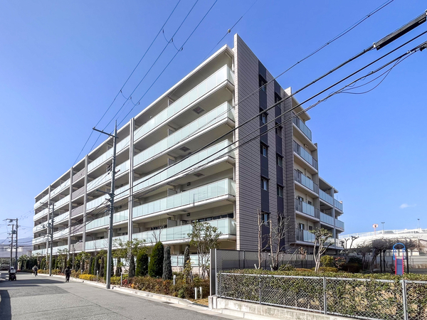 「リビオ西宮門戸」は西宮市若山町に位置する、穏やかな住環境を背景としたマンションです。最寄りの阪急今津線「門戸厄神」駅まで徒歩10分。自転車を利用すれば「西宮北口」駅まで約8分の距離にあります。建物はベージュトーンを基調に、カラーや質感の異なるタイルを組み合わせた瀟洒な外観デザイン。南向き中心の配棟に加え住戸にはアルコープが採用されるなど、プライバシーに配慮した設計が施されています。共用部には住まう人の交流の場となるラウンジが設けられているほか、不在時の荷物受け取りに便利な宅配ボックスも導入。セキュリティ面では、24時間365日対応のセキュリティシステムにより、日々の安全が守られる体制です。専有部は天井高約2.7mの開放的なリビングや、収納率平均約12.69%を確保した多彩な収納計画を採用。周辺環境については、スーパーマーケット「パル・ヤマト西宮店」が至近にあるほか、「アクタ西宮」といった大型商業施設、「市立中央病院」「大市八幡神社」などの施設が徒歩圏内に点在。生活利便性と安らぎを両立する環境が整っています。