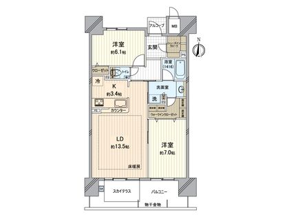 2LDK / 68.56㎡ / 13階
