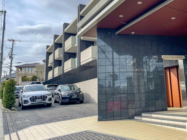 「プレージア逆瀬川宝梅ザ・レジデンス」は宝塚市宝梅1丁目に位置する、鉄筋コンクリート造のマンションです。最寄りの阪急今津線「逆瀬川」駅まで徒歩9分に加え、「宝塚南口」駅へも徒歩10分という2駅利用可能な立地。建物は穏やかな街並みに調和するアースカラーの低層フォルムで、総戸数20戸のプライベート感溢れるマンションとして誕生しました。敷地は三方が道路に面した角地であり、独立性と開放感に優れた配置計画が採用。エントランスアプローチには「フェアリーガーデン」と名付けられた植栽スペースが設けられ、芝桜などの彩りが住まう方の目を楽しませます。駐車場は敷地内に確保され、歩行者と車の動線を分けた歩車分離設計により安全性にも配慮。専有部は平均専有面積82平米台のゆとりある広さが確保され、快適な居住空間が実現されているのも特徴です。周辺には「いかり阪急逆瀬川店」などの商業施設が徒歩圏内にあり、利便性と落ち着きを兼ね備えた住環境が整っています。