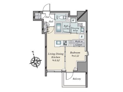 1LDK / 33.04㎡ / 7階