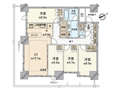 4LDK / 92.38㎡ / 6階