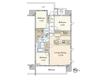 3LDK / 68.4㎡ / 4階