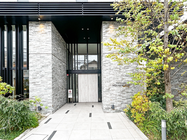 「ホワイトマークス溝の口」は高津区二子6丁目に位置する、2020年6月竣工のマンション。緑豊かな多摩川丘陵の自然と利便性が調和するエリアに立地しています。交通アクセスは、東急田園都市線「高津」駅まで徒歩8分。建物は、ホワイト系タイルを基調としたシンプルで洗練された外観デザインです。エントランスアプローチには大型の庇を設け、垂直・水平ラインを強調したスタイリッシュな構えを採用。エントランスホールは、グレアレスダウンライトによる柔らかな光の演出や、豊かな植栽計画により、住まう方を優雅に迎え入れる空間をデザインしました。専有部は、ライフスタイルの変化に合わせて居室と収納空間の広さを変更できる「UGOCLO(ウゴクロ)」や「アジャストクロゼット」などの可動収納ユニットを導入。自由度の高い空間設計により、居住者の多様なニーズに応える住まいを実現しました。周辺環境については、「ノクティプラザ」や「イトーヨーカドー 溝ノ口店」などの商業施設が徒歩圏内のほか、「二子坂戸緑道(みどり公園)」などの緑地も点在しています。