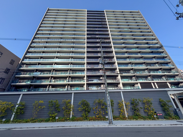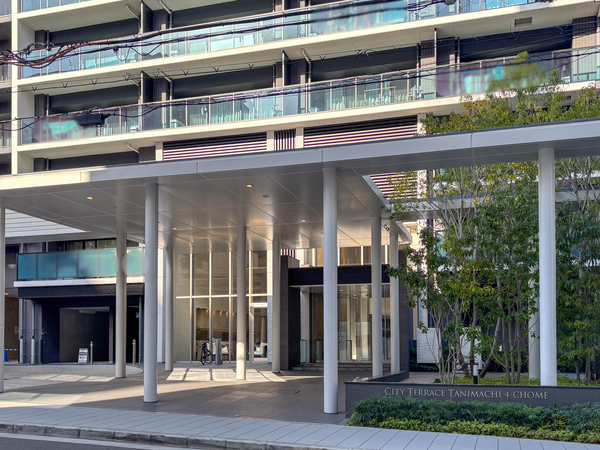 「シティテラス谷町四丁目」は中央区内久宝寺町に位置する、住友不動産分譲のマンションです。最寄りの大阪メトロ谷町線・中央線「谷町四丁目」駅まで徒歩5分。官公庁街や歴史的スポットに近接するエリアに、2023年に竣工しました。建物外観はガラスカーテンウォールやダークグレーのタイルを組み合わせた、都会的で洗練されたデザイン。エントランスホールは二層吹抜けの開放的な空間が広がり、共用部には「テレワークラウンジ」が設置されています。セキュリティ面では、エントランスから住戸玄関まで3重のセキュリティラインが構築され、居住者の安全が守られています。構造面では、地震の揺れを軽減する免震構造が採用。専有部は、生ゴミを粉砕処理できるディスポーザーや、食器洗い乾燥機、温水式床暖房など、日々の暮らしをサポートする設備仕様です。周辺には「大阪城公園」のほか、スーパーマーケット「ライフ空堀店」などの生活利便施設が点在しています。