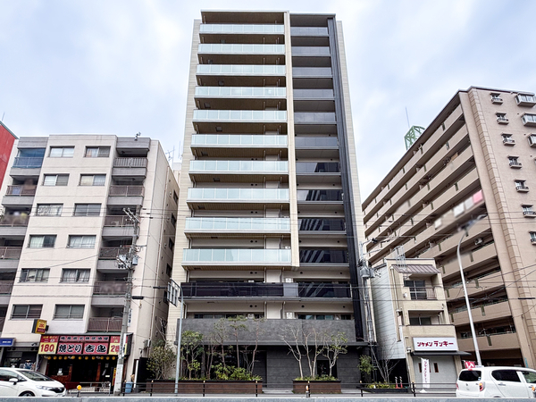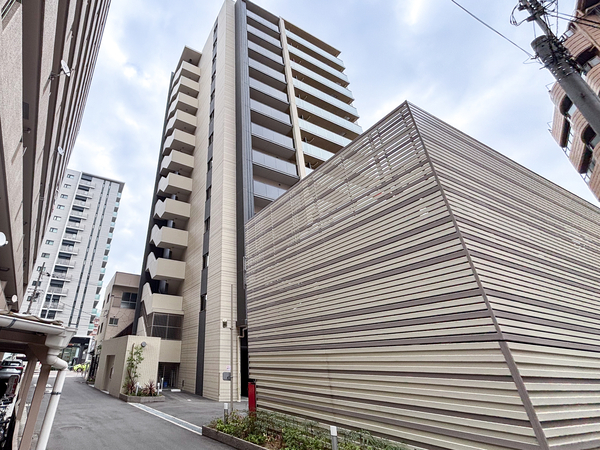 「レ・ジェイド緑橋駅前」は東成区中本3丁目に位置する、総戸数48戸のマンションです。最寄りの大阪メトロ中央線・今里筋線「緑橋」駅まで徒歩1分。駅の出入口から極めて近い距離にありながら、建物内に入ると静謐な居住空間が確保されています。全ての住戸が角住戸となる配棟計画となっており、室内への通風と採光を重視したキュービックプランが採用されました。共用部には宅配ボックスや、自転車の出し入れがスムーズなスライドラック式駐輪場を設置。室内設備については、浄水器一体型シャワー水栓を備えたシステムキッチンや、ミストサウナ機能付きガス温水浴室暖房乾燥機を備えています。複層ガラスの採用により断熱性能を高め、快適な室内環境を維持できる点も特徴。周辺環境については、スーパーマーケットの「ライフ緑橋店」や「コノミヤ緑橋店」などの買い物施設が徒歩圏内。また「東中本公園」や「中本くすのき公園」といった緑豊かな公園施設も身近にあり、都市の利便性と穏やかな住環境を両立したロケーションとなります。