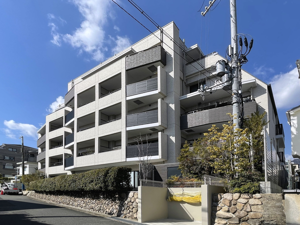 「ワコーレ六甲楠丘町」は灘区楠丘町6丁目に位置する、2023年築のマンションです。最寄りの阪急神戸線「六甲」駅まで徒歩5分という、利便性と閑静な住環境を兼ね備えたロケーションがポイントです。建物は第一種中高層住居専用地域に佇む地上5階建ての低層マンションとして計画され、外壁にはボーダータイルや二丁掛タイルを用いた重厚感あるデザインが採用されています。エントランスアプローチには豊かな植栽が施され、四季の移ろいを感じられる空間が演出されています。セキュリティ面では、ハンズフリーキー「Raccess」や24時間セキュリティシステムが導入されており、安心感が高められています。専有部には家事の時短を叶える食器洗い乾燥機や、生ゴミを処理できるディスポーザー、浴室暖房乾燥機などの先進設備が充実。また、リビング・ダイニングにはガス温水式床暖房が設置され、足元から部屋全体を暖めて快適な暮らしをサポートします。周辺環境については、「阪急オアシス六甲店」や「いかり 六甲店」、「六甲八幡神社」などが徒歩圏内です。