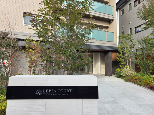 「ルピアコート草加グリーンヴィラ」は中央2丁目に位置する、2023年竣工のマンション。東武スカイツリーライン「草加」駅まで徒歩8分の場所に立地しています。 建物はタイルと透明感のあるガラス素材を組み合わせた、モダンで洗練された外観デザインです。エントランスアプローチにはシラカシやシマトネリコなどの植栽が配され、緑豊かな景観を創出。敷地内には駐車場や、1住戸につき2台分のスペースを確保した駐輪場が設置されています。 共用部には、国産材の家具を設えたラウンジ「みんなのリビング」や、キャンプ用品などのシェアアイテムが保管された倉庫があります。また、ハンズフリーのノンタッチキーシステムや宅配ボックスが採用され、快適な暮らしをサポート。専有部には、家事負担を軽減する食器洗い乾燥機やタッチレス水栓、床暖房などが設置されています。徒歩圏内に「ヨークマート草加店」「草加マルイ」などの商業施設が揃っています。