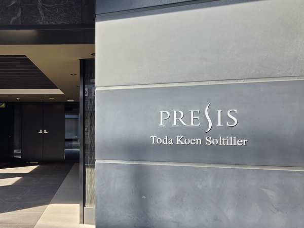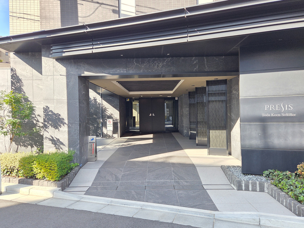 「プレシス戸田公園ソルティエ」は、本町3丁目に位置する、2022年1月竣工のマンションです。都心へのアクセスに優れたJR埼京線「戸田公園」駅へは徒歩8分。建物は、グレーの濃淡を活かしたタイルをメインに使用し、垂直ラインを強調するマリオンが施されたスタイリッシュなデザイン。エントランスホールには、中庭の緑景を切り取る格子窓が配され、訪れる人を穏やかに迎える迎賓の空間を設えています。敷地計画では、歩行者と車の動線を分けた歩車分離設計が採用されており、安全面に配慮されている点が特徴です。1階住戸にはテラスと専用庭が設けられ、戸建て感覚の暮らしを楽しめる点も魅力のひとつ。共用部には、24時間利用可能なゴミ置場や、不在時の荷物受け取りに便利な宅配ボックスを備えています。周辺環境については、駅直結の商業施設「ビーンズ戸田公園」があり、スーパーマーケット「サミットストア」をはじめとした多彩な店舗が揃っているため、日常の買い物に困ることはありません。また、近隣には「大前緑地」などの公園も点在し、利便性と自然環境が調和した住環境が整っています。