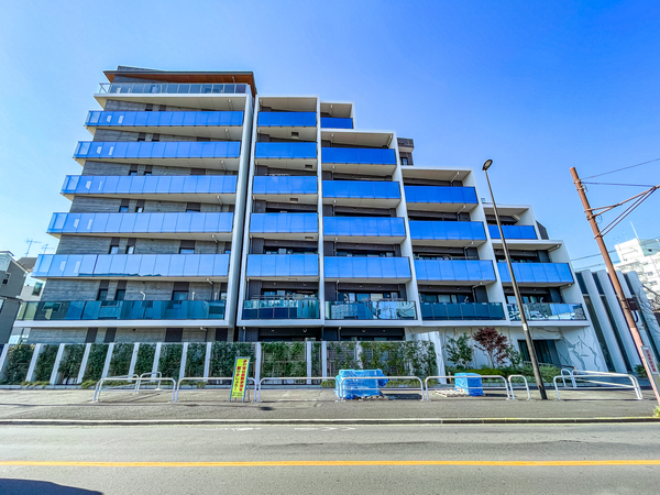 「アールブラン大森レジデンス」は、大田区大森西1丁目に位置する、鉄筋コンクリート造のマンションです。最寄りのJR京浜東北線「大森」駅までバス便があるほか、京浜急行本線「平和島」駅へも徒歩11分でアクセスが可能です。敷地内には安全性に配慮した歩車分離設計が採用され、桜や紅葉などの豊かな植栽を各所に配置。垂直と水平のラインを強調したグリッドデザインが特徴の外観には、周囲の風景を映し出す熱線反射ガラスが採用されています。エントランスホールは2層吹き抜けの迎賓の空間です。建物内には宅配ロッカーが設置されています。専有部には、断熱性能を高めるLow-E複層ガラスや高効率な熱源機エコジョーズ、TES温水式床暖房が採用されており、快適な生活を支えます。屋上には太陽光発電パネルが設置され、ZEH-M Orientedの高い省エネ性能が大きな特徴となります。周辺には、商業施設の「マチノマ大森」や「オーゼキ大森北店」が点在。さらに広大な「平和の森公園」や、「東邦大学医療センター大森病院」が徒歩圏内に位置しています。