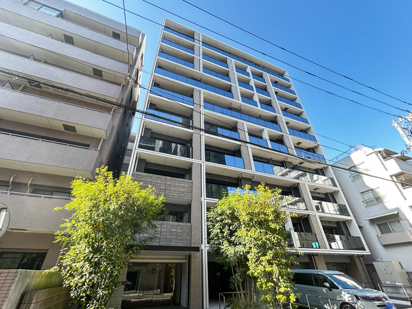 「ピアース武蔵小杉」は中原区新丸子町に位置する、2021年8月竣工のマンションです。東急東横線・目黒線「武蔵小杉」駅まで徒歩4分、さらに「新丸子」駅までも徒歩4分という2駅利用可能な立地にあります。東急新横浜線の開業により新幹線アクセスも向上し、都心だけでなく広域への移動もスムーズな環境です。建物は、ガラス面と黒塗装の溝を設けたマリオンを組み合わせたグリッドデザインの外観が特徴で、アプローチにはシンボルツリーが配置されています。エントランスホールは、和紙を挟んだ合わせガラスの光壁が柔らかな灯りを放ち、住まう方を優雅に迎える空間演出。共用廊下は内廊下が採用され、外部からの視線を遮るとともに、静かで落ち着いた私邸の雰囲気が高められています。専有部はコンパクトなプランを中心に、角住戸率を高めた採光性の高い設計がなされています。周辺環境については、昔ながらの風情が残る「法政通り商店街」や「イダイモール」などの商店街が徒歩圏内に位置しています。また、近隣には渋川の桜並木や「京浜伏見稲荷神社」があり、街の歴史と自然が感じられるロケーションです。