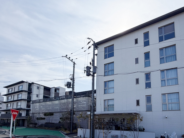 「レ・ジェイド伏見桃山」は、伏見区肥後町に位置する2023年竣工のマンションです。最寄りの京阪本線「丹波橋」駅まで徒歩12分。建物は三方接道の敷地形状を活かし、独立性を考慮した3棟構成の配棟設計。外壁には白色を基調としたタイルが用いられ、バルコニー手摺や窓枠には墨色を配したデザイン。エントランスホールには、地域の歴史を反映した木調ルーバー天井やガラスアートを設置。利便施設として、共用部には非接触キー対応のオートドアや、宅配ロッカーが導入されています。専有部は柱のデッドスペースを排除したアウトポール設計となっており、機能的な室内空間を構成。室内設備にはガス温水式床暖房や食器洗浄乾燥機、ミストサウナ機能付きのガス温水浴室暖房乾燥機が整っています。周辺は「伏見大手筋商店街」や「京都コープ桃山」「マンダイ丹波橋店」などの買物施設が徒歩圏内。また「伏見桃山総合病院」や「竹中鷹匠公園」が徒歩圏内に点在しています。