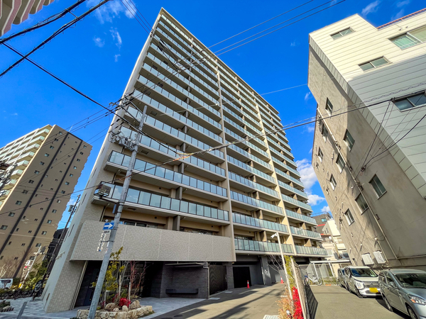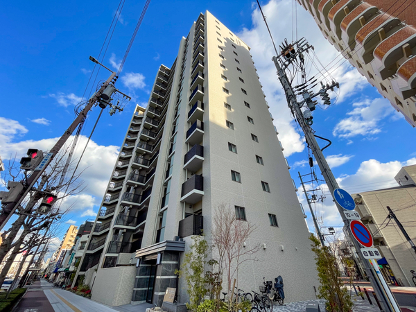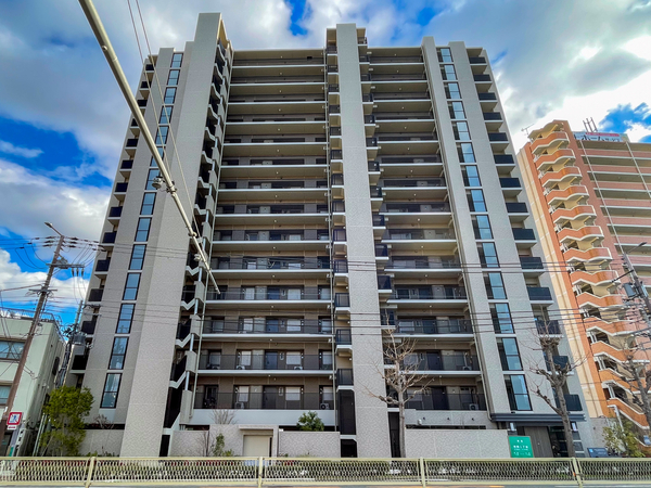 「ザ・レジデンス弁天町みなと通り」は港区市岡2丁目に位置する、鉄筋コンクリート造のマンション。建物はみなと通に面した二方接道の角地にあり、アースカラーのタイルとガラス手摺が織りなす外観は、街並みに調和した洗練された印象を与えます。敷地配置においては、歩行者と車両の動線を分けた歩車分離設計が採用され、安全性への配慮がなされています。エントランスは南北2カ所に設けられ、車寄せやラウンジなど迎賓の思想が息づく共用空間を確保。専有部は全邸が南向きに配置され、柱をバルコニー側に出したアウトポール設計により、すっきりとした室内空間が実現されています。また、複層ガラスや「エコジョーズ」などの省エネ設備も標準装備。環境と家計に優しい暮らしが提案されています。そのほか収納スペースも豊富に設けられ、居住者の利便性が高められています。交通アクセスは、大阪メトロ中央線「朝潮橋」まで徒歩9分。周辺には「関西スーパー市岡店」や「MEGAドン・キホーテ弁天町店」などの商業施設も徒歩圏内に揃っています。都市機能の利便性と、落ち着いた住環境が調和したロケーションも魅力のひとつです。