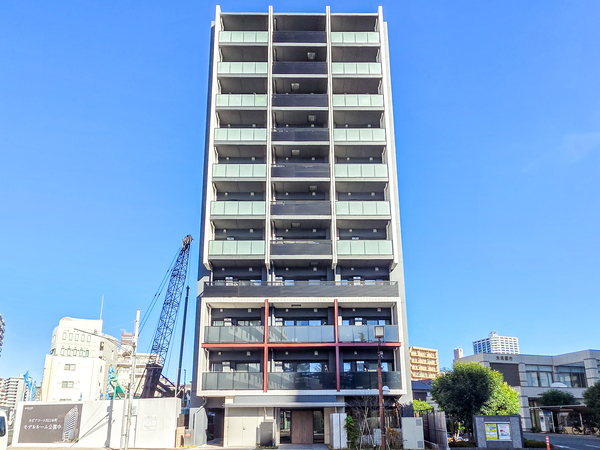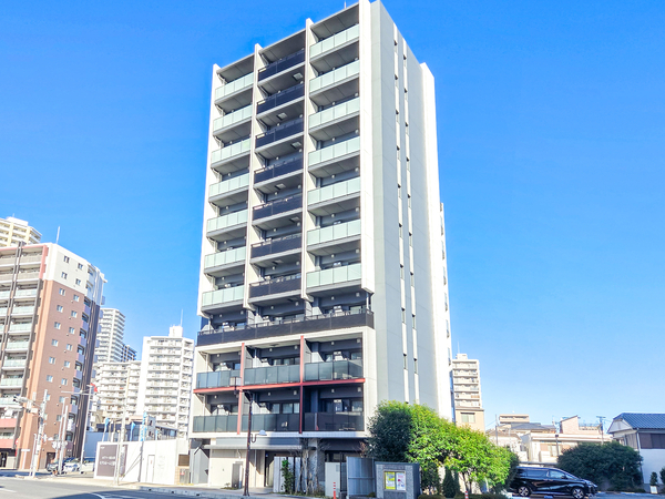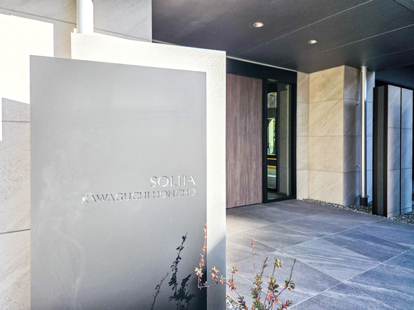 「ソルティア川口本町」は、本町3丁目に位置する、2025年竣工の鉄筋コンクリート造マンションです。最寄りのJR京浜東北線「川口」駅までは徒歩8分。建物はホワイトとダークグレーのコントラストが印象的なファサードデザインで、ガラスや金属素材のフレームが都市的な洗練を演出。エントランスホールは、奥が見通せないようクランクさせた動線を確保し、居住者のプライバシーを守る設計です。セキュリティ面では、エントランスから住戸玄関まで3段階のチェックシステム、荷物を持ったままでも解錠できるハンズフリーキー「テブラキー」、24時間遠隔監視システムを導入。専有部においては、中空スラブ工法の採用により小梁の出ないすっきりとした空間を実現。メインバルコニー側は柱を室外に出したアウトポール設計となっており、家具の配置がしやすいのも魅力。室内には温水式床暖房や食器洗い乾燥機などの機能的な設備が標準装備されています。周辺には、スーパーや飲食店が入る「樹モールプラザ」をはじめ、「西友」などの商業施設が徒歩圏内に揃っています。緑豊かな「本町緑地」も身近にあり、利便性と穏やかな住環境を兼ね備えた立地です。