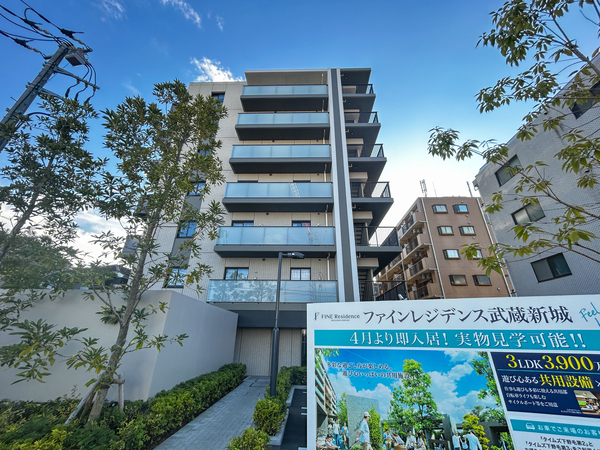 「ファインレジデンス武蔵新城」は高津区新2丁目に位置する、2024年竣工のマンションです。最寄りのJR南武線「武蔵新城」駅まで徒歩19分。ターミナル駅である「武蔵小杉」駅まで直通5分、「武蔵溝ノ口」駅まで直通3分、都心主要部へダイレクトにアクセスできます。外壁には質感豊かなタイルが採用され、格調高い外観意匠となっています。敷地内には森のような「フォレストテラス」や、居住者の交流を促す「たまりばラウンジ」が設置されています。不在時の荷物を受け取れる宅配ボックスも導入。専有部には家事動線を考慮した機能的なキッチンがあり、食器洗浄乾燥機や人造大理石フルフラットカウンターなどが備えられています。徒歩圏内には「セブン-イレブン川崎下野毛3丁目店」や「ビーンズ武蔵新城」、「西友武蔵新城店」などがあり、日常の買い物に便利です。さらに、陸上競技場、野球場、テニスコート、サッカー場、とどろきアリーナなど多数の運動施設がある「等々力緑地」も徒歩圏内にあります。