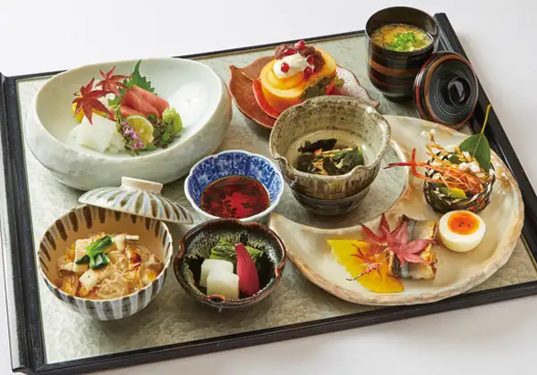 ダイニングでのメニューの一例。和洋中の日替わりメニューが毎日楽しめる。