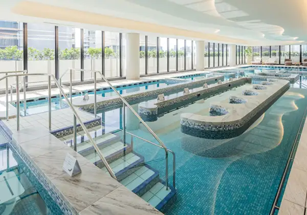 水中ウォーキングのできるプールやジムのほか、健康のためのプログラム各種を用意。