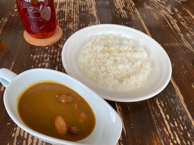 ホロホロとしたチキンが、まろやかなルーとマッチしていて食べ応えも十分! 辛さも甘口・中辛・辛口からお好みで選ぶことができます。蒸したじゃがいもとアイスティーもセットで付いてきて、満足感たっぷりでした。