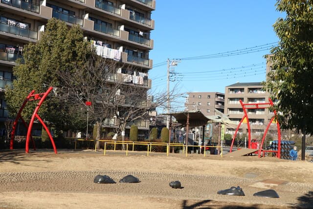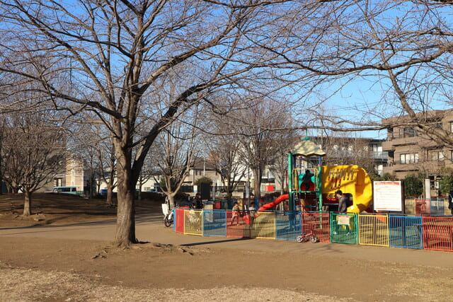 公園の広場は走り回れるほどのスペースがあり、遊具も完備されているので、親子でのびのびと遊ぶことができます。
