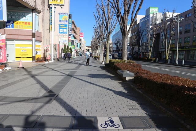 ▲駅周辺の歩道は自転車専用のエリアがあるなど、整備されている