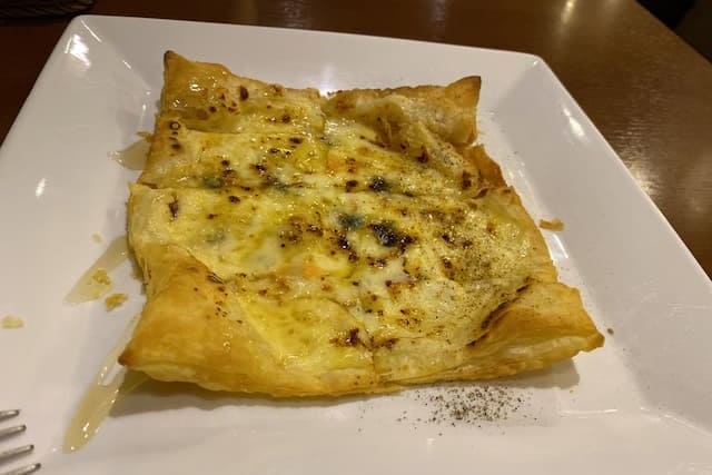 この日は、自家製フォカッチャ・サラダがついたランチセットの「Aセット(1,080円)」を注文。メインは「本日のパスタ」「チーズのパイピッツァ」から選べますが、珍しいのでパイピッツァを食べてみることに。口当たりの軽いパリッとしたパイ生地に、とろっとろのチーズ、そして上にかかった蜂蜜の相性が抜群でした! これはやみつきになりそう。