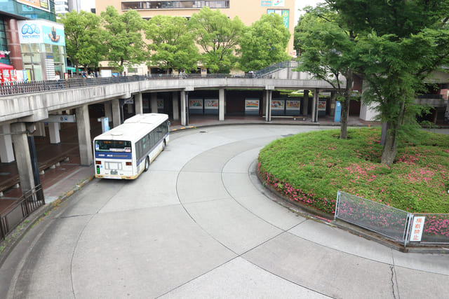 電車だけではなく、駅前には広々としたバスターミナルも備わっています。バスに乗れば大学や市役所、病院などにもダイレクトにアクセスできるので、市内の移動もらくちん。