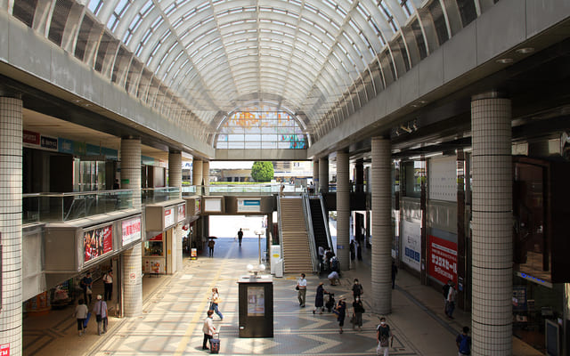 改札を出てすぐの場所には、アーケードから入る日差しが美しい広場が。バスロータリーと反対の方向へと足を進めると、大きな広場と商業施設「プレンティ西神中央」があります。