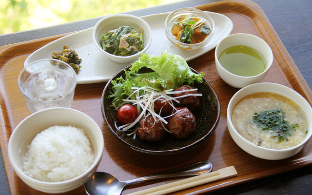 この日いただいたのは、副菜も彩り豊かな「平野ごはん(ドリンク付き・1,030円税込)」。どのおかずも優しい味で、野菜もたくさんとれて嬉しい。広大な田園風景を眺めながら食事をすれば、とても穏やかな気分が味わえます。