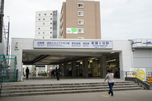 駅名:京成電鉄・成田スカイアクセス線、東武鉄道・東武アーバンパークライン(東武野田線)、新京成電鉄・新京成線、北総鉄道・北総線「新鎌ヶ谷」駅