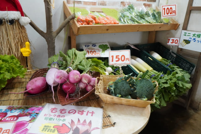 農産物の直売所があちこちにあり、新鮮な野菜を農家から直接買うことができます。「市制記念公園」そばの「アヒル農園」にはとれたての野菜が並びます。その日収穫した路地栽培の野菜は、ほうれん草や大根など旬のものが揃い、葉がピーンとしていて新鮮そのもの。車で訪れてたくさん買い込んでいくお客さんも多いとか。
