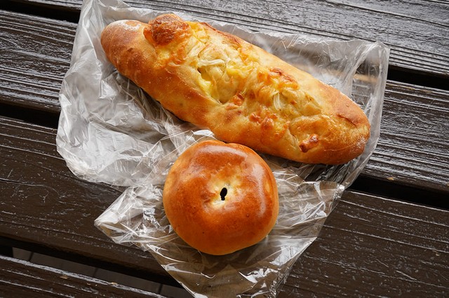 自慢の手作りあんこがたっぷりの「小倉あんぱん(160円)」を、店舗前のテーブルで休憩がてら、いただいてみました。確かに手作りだとわかるやさしい甘みのあんこがたっぷり。人気の「オニオンチーズクッペ(250円)」も翌日の朝食にいただきましたが、たっぷりのチーズと甘い玉ねぎがアクセントになっていて、人気があるのがわかるお店でした。